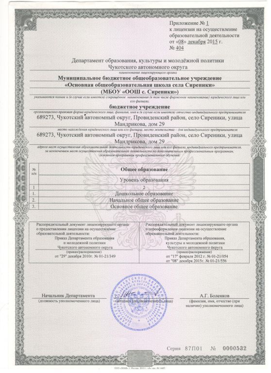- Места осуществления образовательной деятельности по дополнительным профессиональным программам: 689273 Чукотский автономный округ, Провиденский район, село Сиреники, улица Мандрикова, дом 29